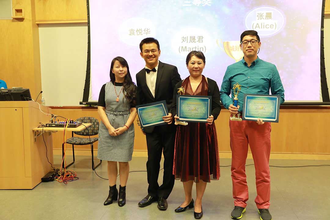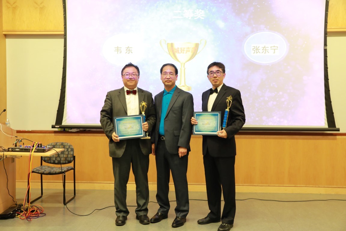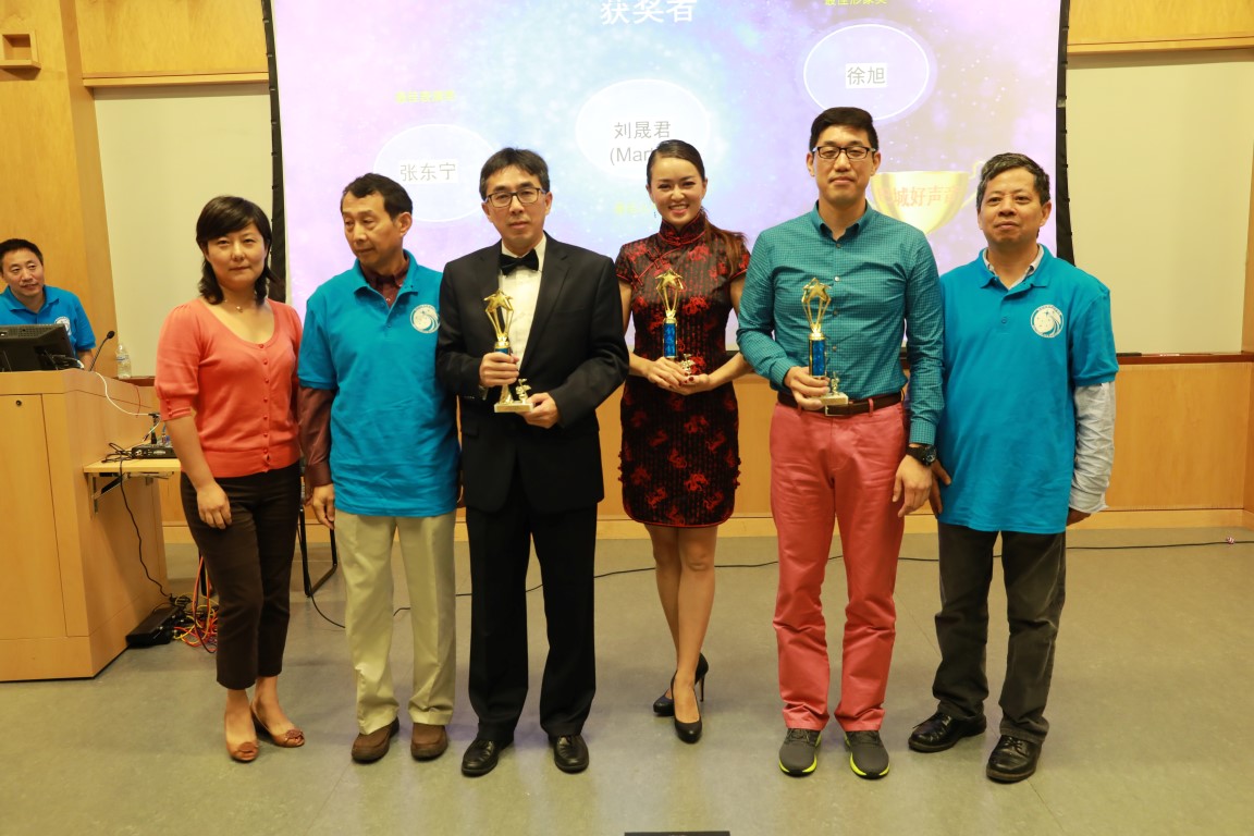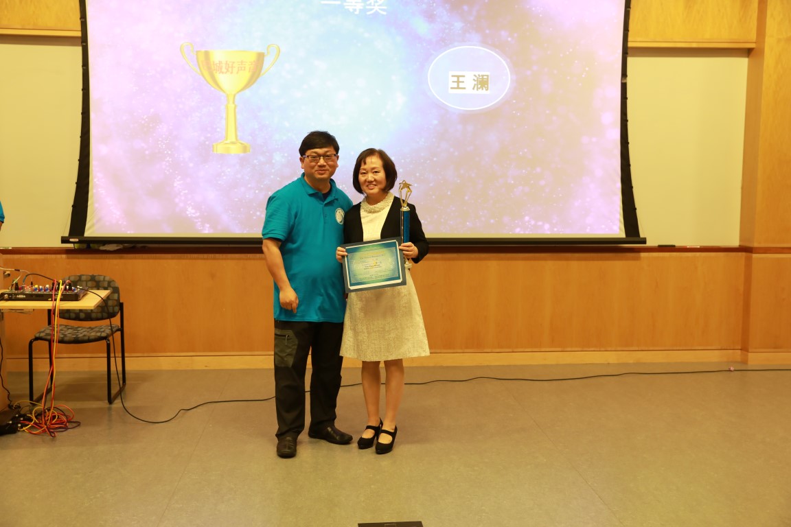 中文学校理事会副主席,新星合唱团副团长 Dr.吴有能为亚军韦东,张东宁颁奖